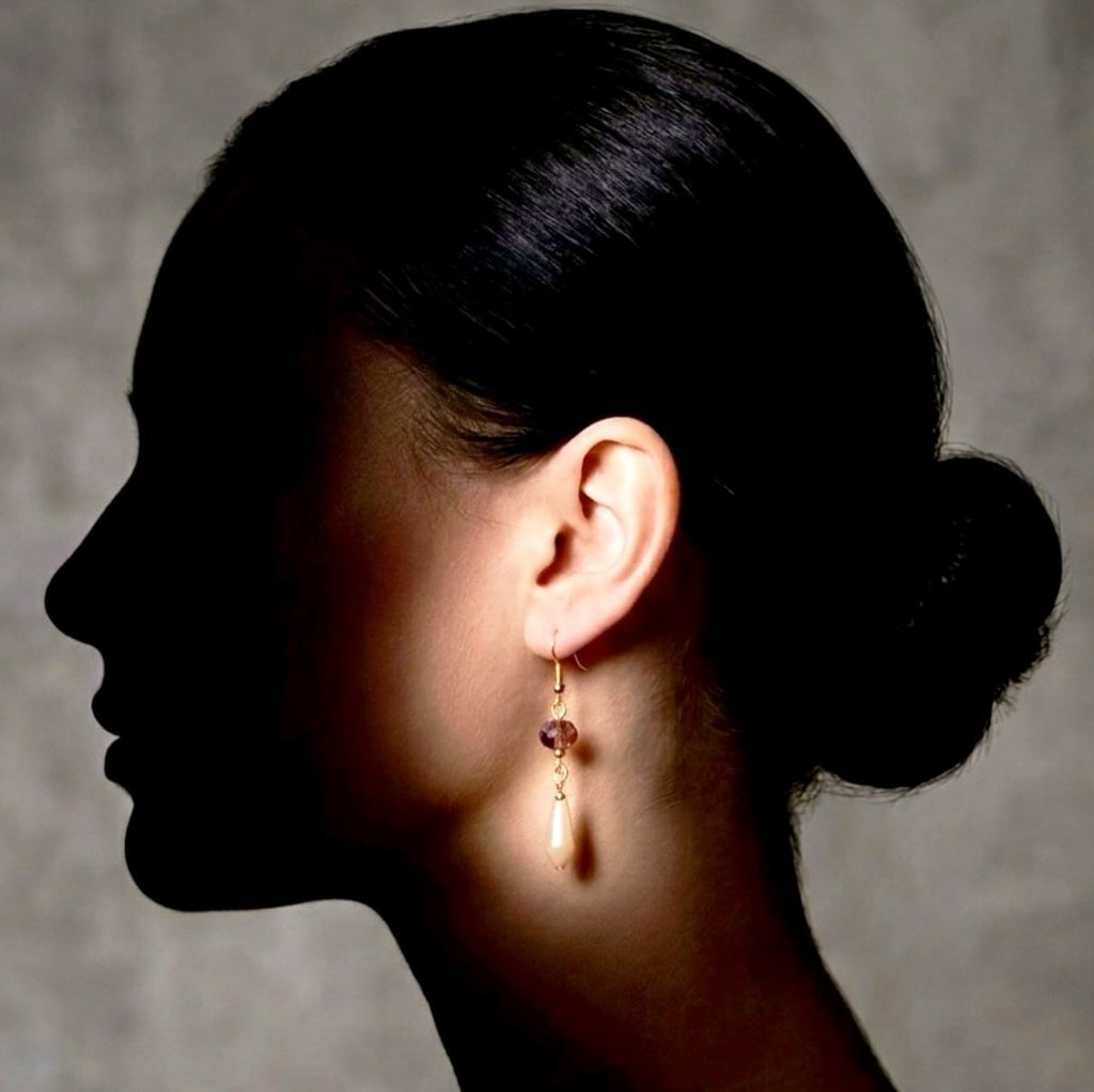 Orecchini realizzati con perle, cristalli e pietre dure sfaccettate, pensati per creare un delicato gioco di luce e movimento. Il design essenziale ma raffinato valorizza il viso con discrezione, donando eleganza e carattere a ogni look. Perfetti da indossare sia nelle occasioni speciali che nella quotidianità, per uno stile sempre armonioso e luminoso.