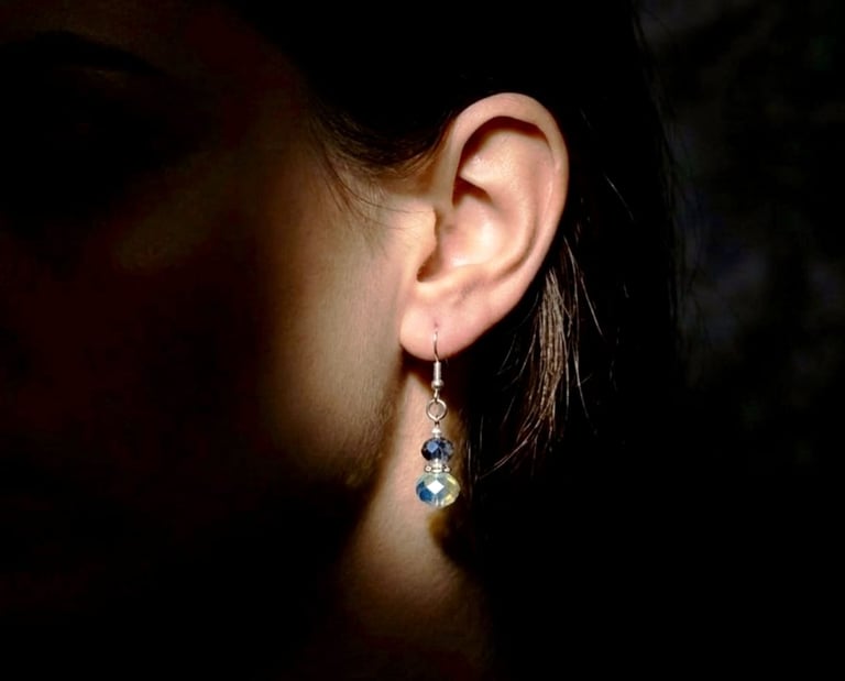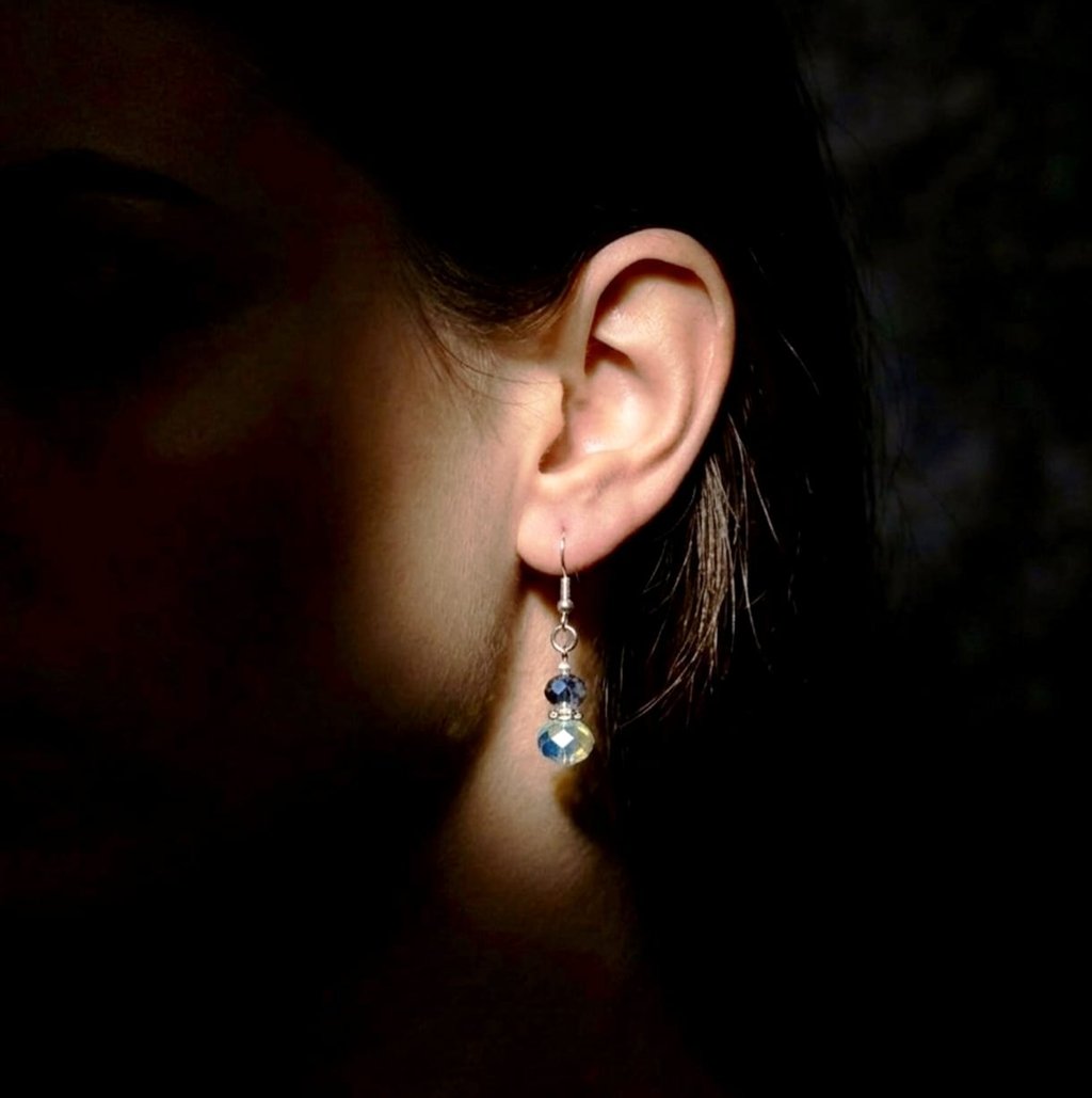 Orecchini dalle linee essenziali arricchiti da cristalli sfaccettati che riflettono la luce con eleganza. Le tonalità profonde si uniscono a bagliori delicati, creando un equilibrio raffinato e contemporaneo. Leggeri e versatili, sono pensati per illuminare il viso con discrezione, accompagnandoti dal giorno alla sera con naturale stile.