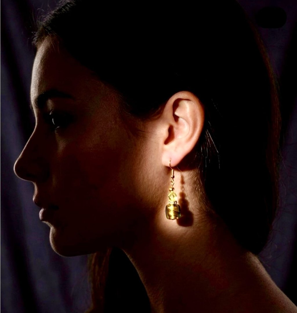 Orecchini dalle linee essenziali impreziositi da cristalli dai riflessi caldi e avvolgenti. Le tonalità dorate catturano la luce con eleganza, creando un effetto luminoso e sofisticato. Leggeri e raffinati, accompagnano ogni look con discrezione, donando un tocco di luce perfetto dal giorno alla sera.