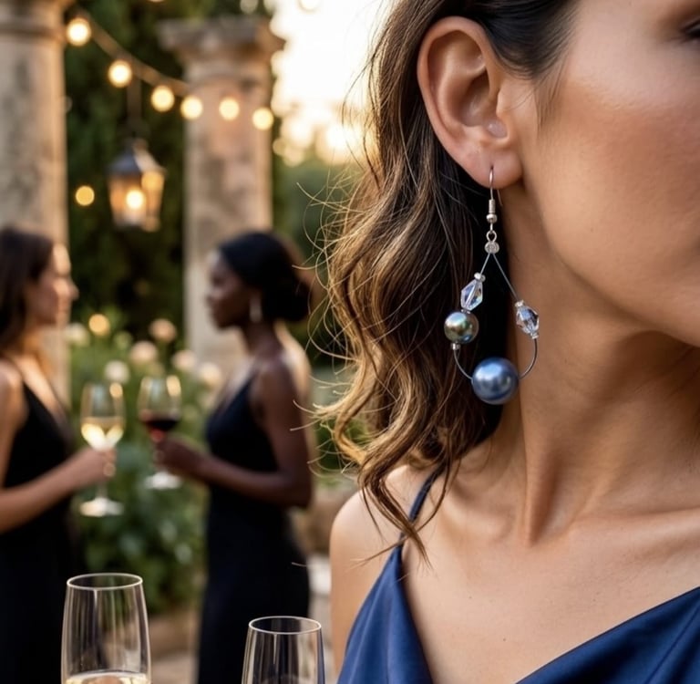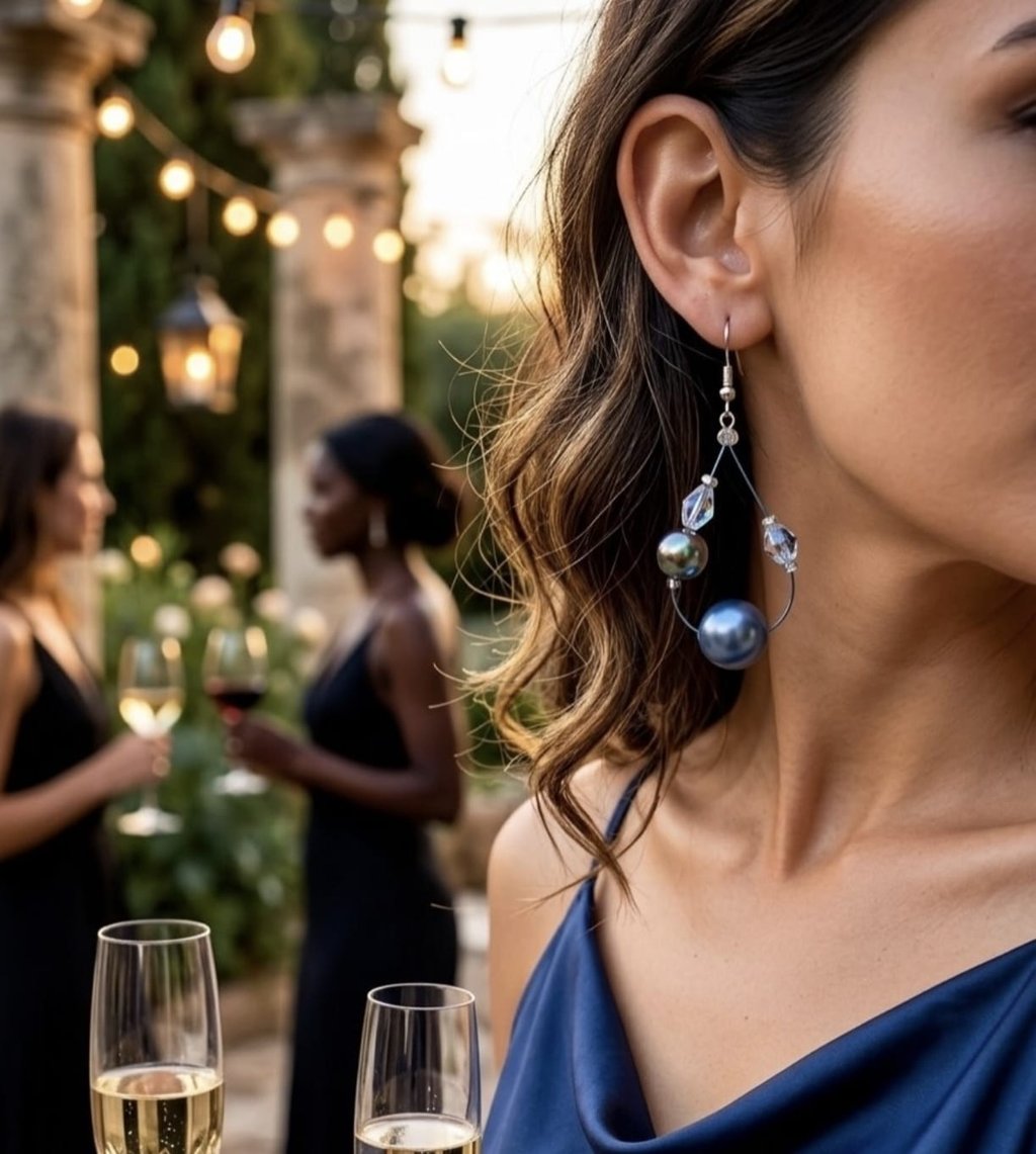 Orecchini realizzati con perle e cristalli, pensati per creare un raffinato gioco di luce e movimento. Il design armonioso e leggermente dinamico valorizza il viso con eleganza, donando profondità e carattere a ogni look. Perfetti per le occasioni speciali o per aggiungere un tocco distintivo anche agli outfit più semplici.